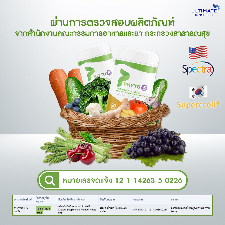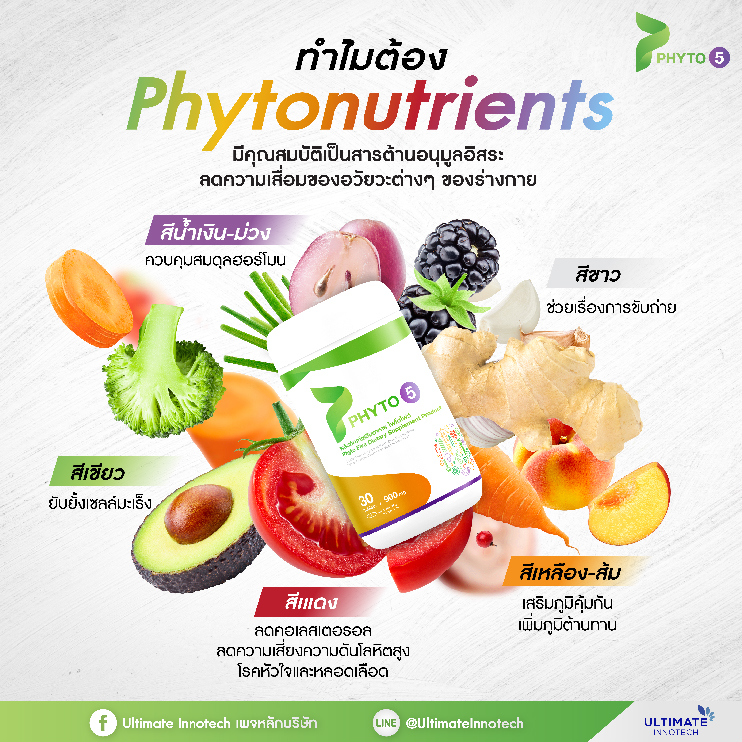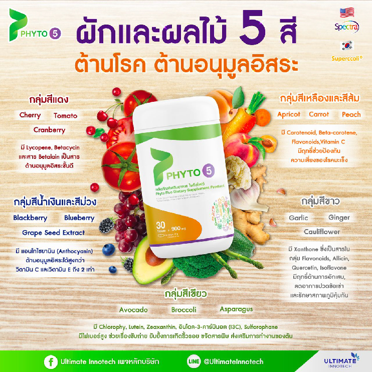 ผลิตภัณฑ์เสริมอาหาร ต้านอนุมูลอิสระ ด้วย Phytonutrients จากผัก ผลไม้ และสมุนไพร 5 สี มากกว่า 40 ชนิด