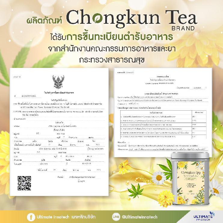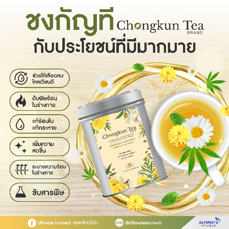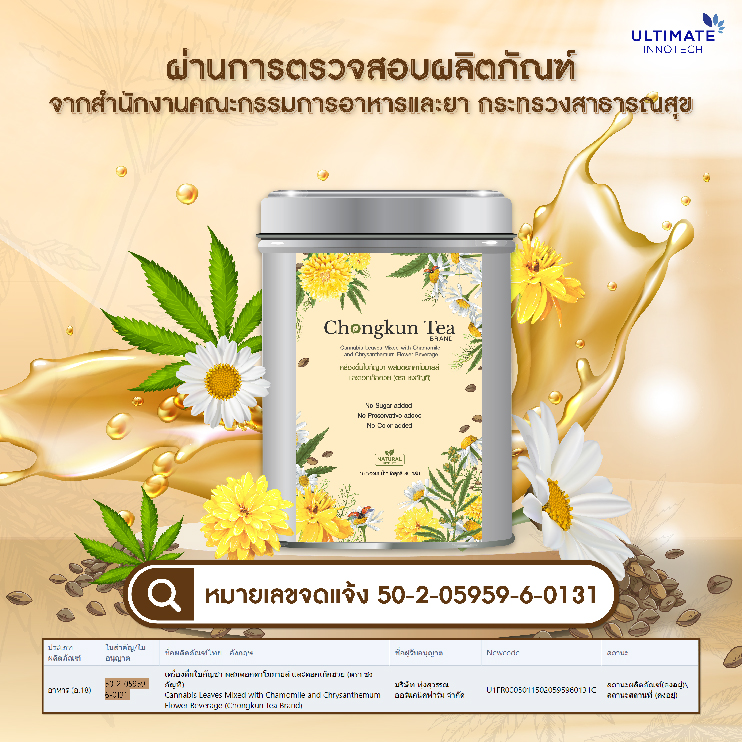 ชากัญชา ออร์แกนิก เครื่องดื่มใบกัญชา ผสมดอกคาโมมายล์ และดอกเก๊กฮวย
