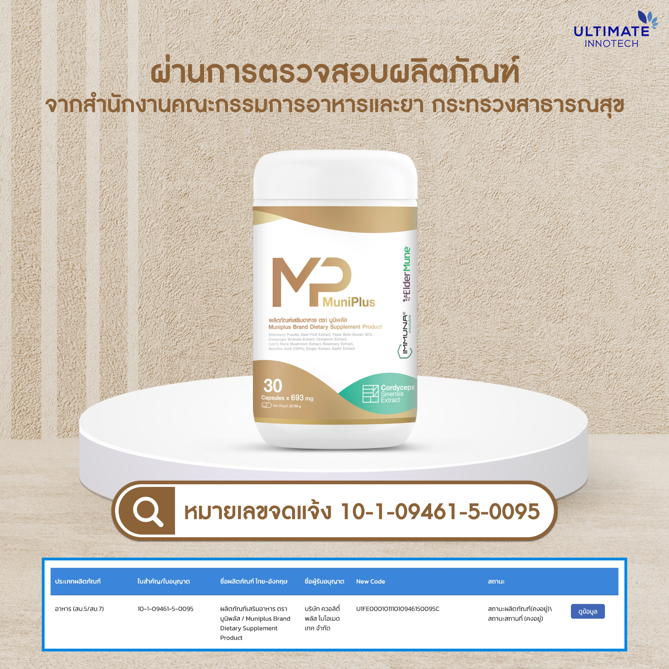 ผลิตภัณฑ์เสริมอาหาร สร้างภูมิคุ้มกัน ยับยั้งเชื้อไวรัส และเชื้อแบคทีเรีย ลดความเสี่ยงจากสาเหตุของโรคมะเร็ง คิดค้นสูตรโดยแพทย์เฉพาะทาง